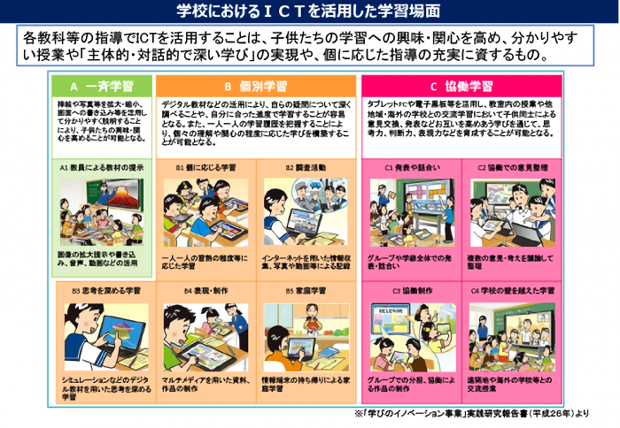 ・文部科学省「学校におけるICTを活用した学習場面」